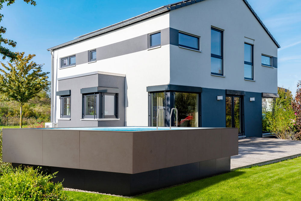 Ob freistehend oder halbversenkt – dieser Pool fügt sich harmonisch in jede Umgebung ein und setzt neue Maßstäbe im Segment der Aufstellpools.